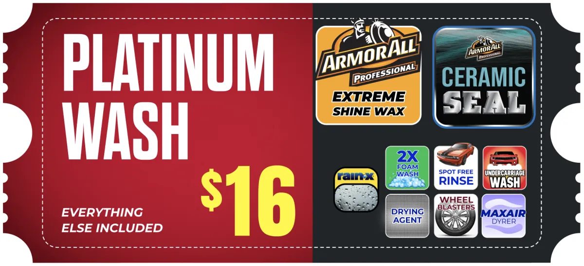 Unlike most other car washes that use physical sponges and scrubbers to clean your car (which are prone to leave scratches and other damage), the ONLY thing that will ever touch your car at our wash is soap, water, & wax... three things that work together to provide you with a sparkling clean finish and a protective shield that will ensure the long term health of your car's appearance.